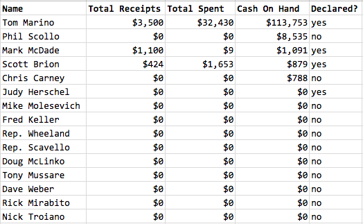 It’s hard to look at Tom Marino’s fundraising totals and believe he is actually running for reelection. Just compare what Marino raised to his colleague, Lou Barletta, who raised a whopping $464,444. I suspect, Marino is depleting his reserves, so he just has a minimal cash on hand as he closes out his last term. All of the potential Republican candidates have respectfully not publicly announced their intentions to run until Marino makes public decision about 2018. After the release of this report, we can expect a clamoring amongst Republicans to enter the race — we can expect a crowded Republican primary.